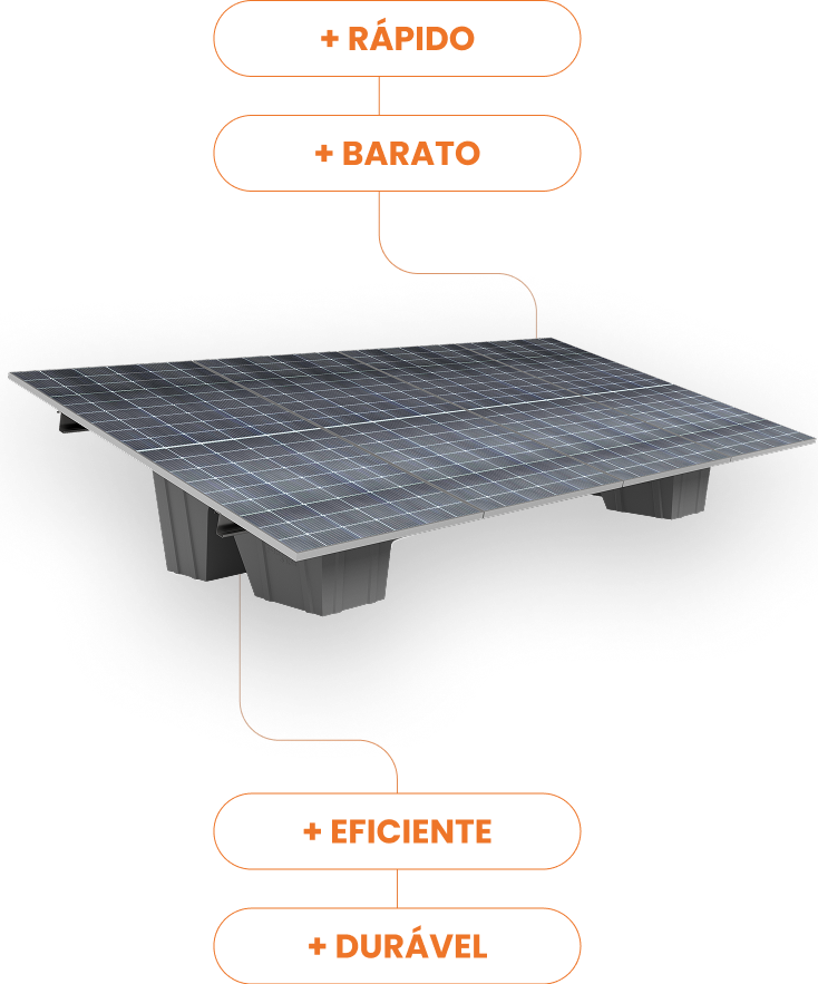 Sua estrutura modular elimina o uso de concreto, reduz o tempo de instalação e garante durabilidade em qualquer tipo de solo. Com design leve e 100% reciclável, o sistema oferece montagem rápida, manutenção prática e menor impacto ambiental, entregando mais eficiência, previsibilidade e retorno sobre o investimento em energia solar.